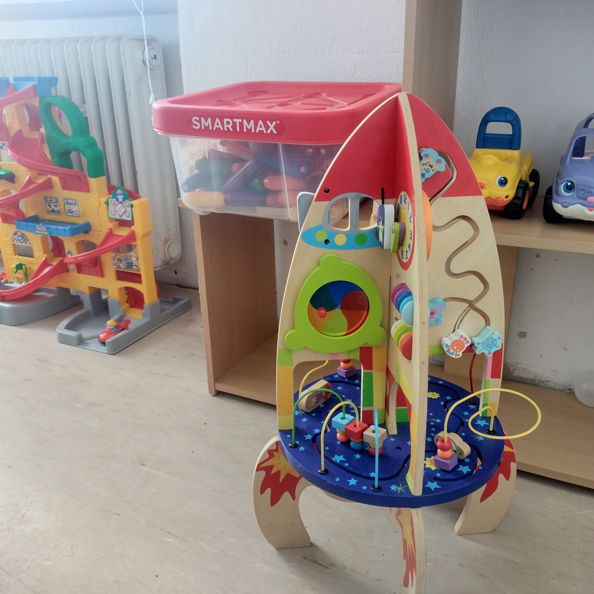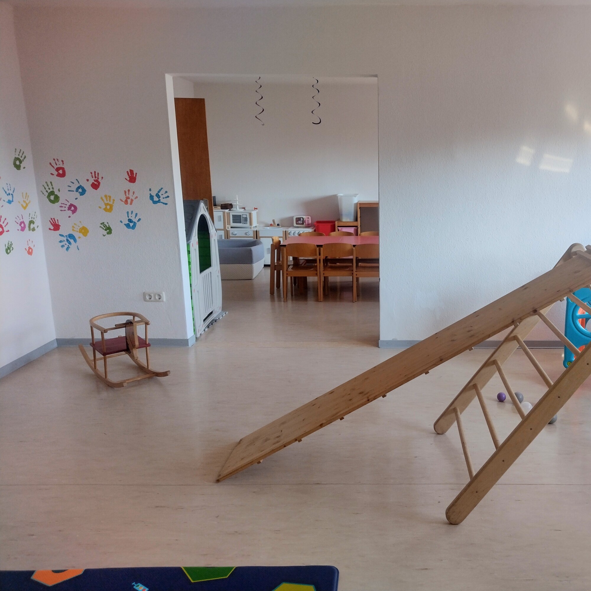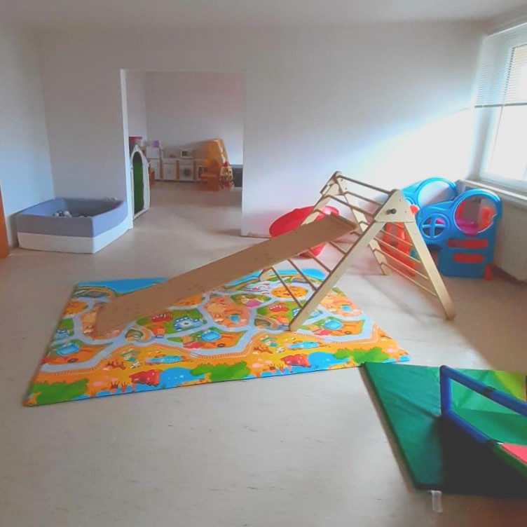 - Für Kinder: 3 zusammenhängende Räume mit Arbeitstischen, Bastelmaterial, Spielküche, Spielhäuschen, Spielfahrzeugen, Bällebad, Rutsche…