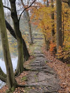 Gegen 15:30 Uhr wanderten wir, mit dem leckeren Essen gestärkt, durch den AveNatura Waldfriedhof zum Parkplatz zurück.