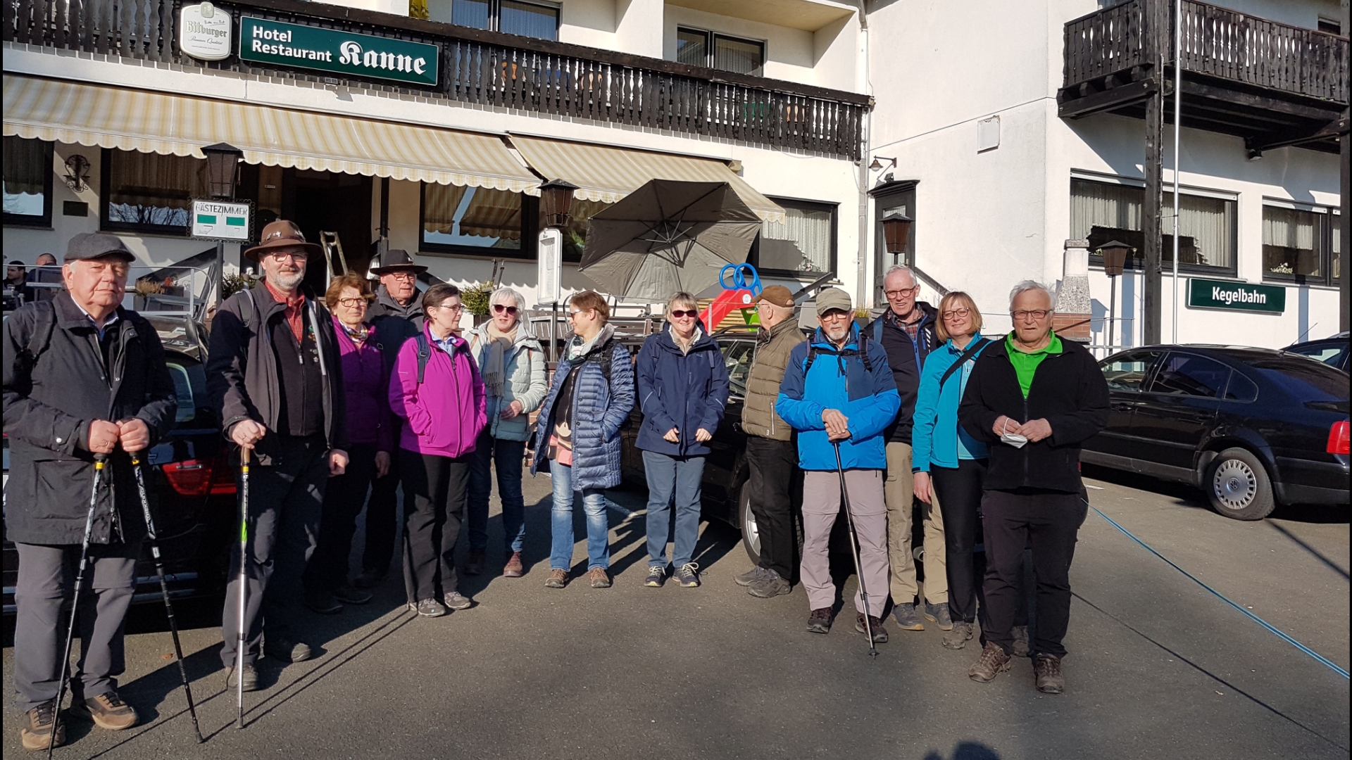 Hier wurden wir schon von unseren Wanderfreunden aus Bad Driburg erwartet. Da wir jetzt alle zusammen waren, konnten wir beim Hotel Kanne in Siebenstern 15 Personen, tel. anmelden.